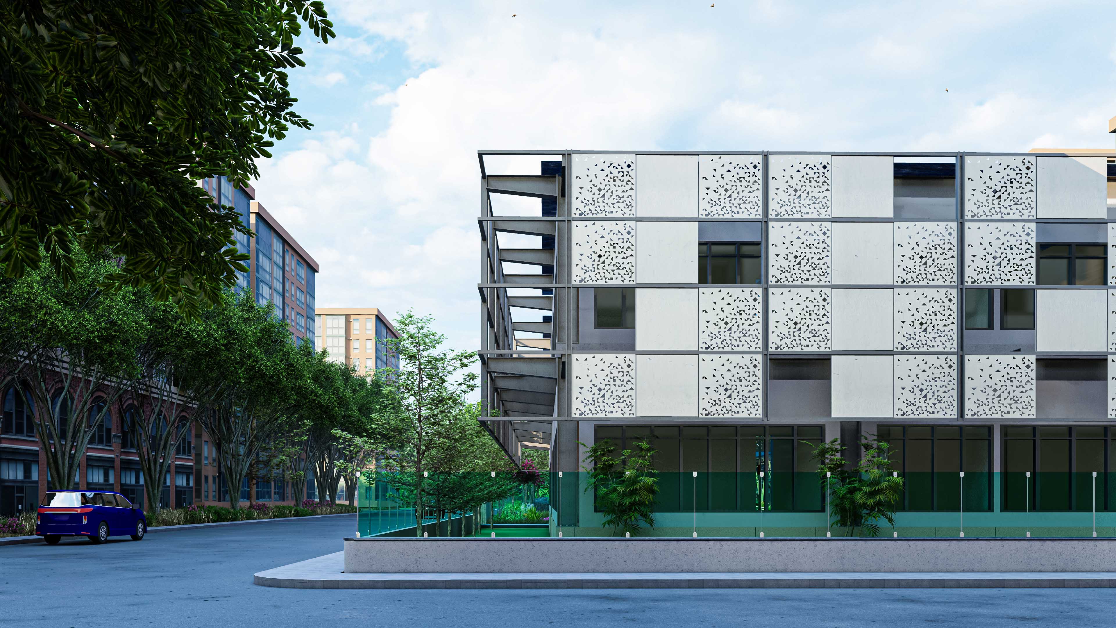 Because the project sits in a dense urban setting where green space is scarce, a major design strategy was to integrate generous landscaped areas within the site. These outdoor zones provide a much-needed sense of relief for visitors, offering fresh air, natural cooling, and opportunities to relax or interact while waiting. The green spaces also reduce interior congestion, creating a healthier work environment for staff and visitors alike.