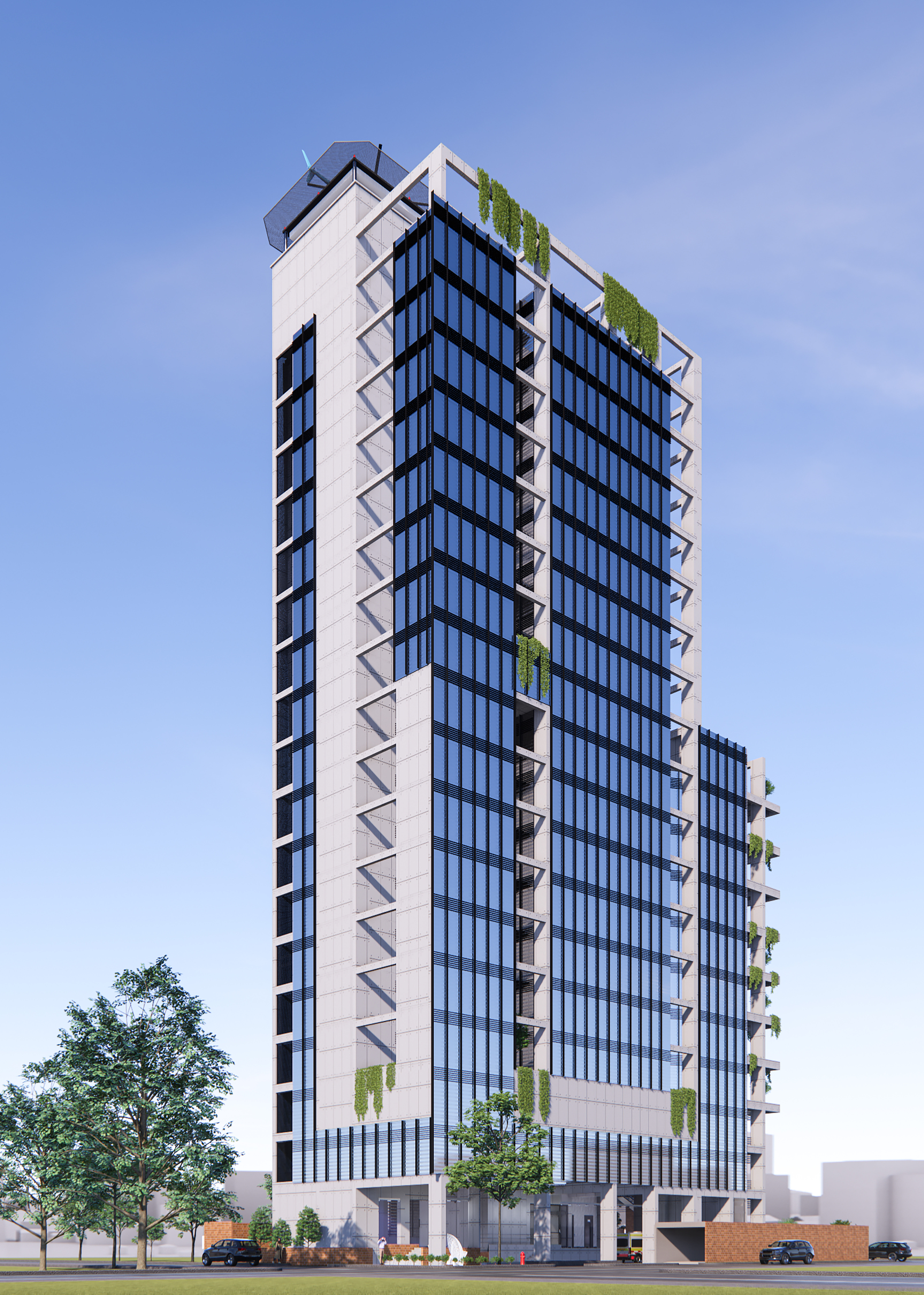Located in the dense urban fabric of Dhanmondi, Dhaka, the Beximco Healthcare redefines the experience of healthcare architecture. From the ground to 9th floor, the building houses diagnostic facilities, while the 10th to 18th floors accommodate corporate offices. The design aims to break away from the fear and monotony often associated with medical centers, replacing them with spaces that feel restorative, open, and human-centered.