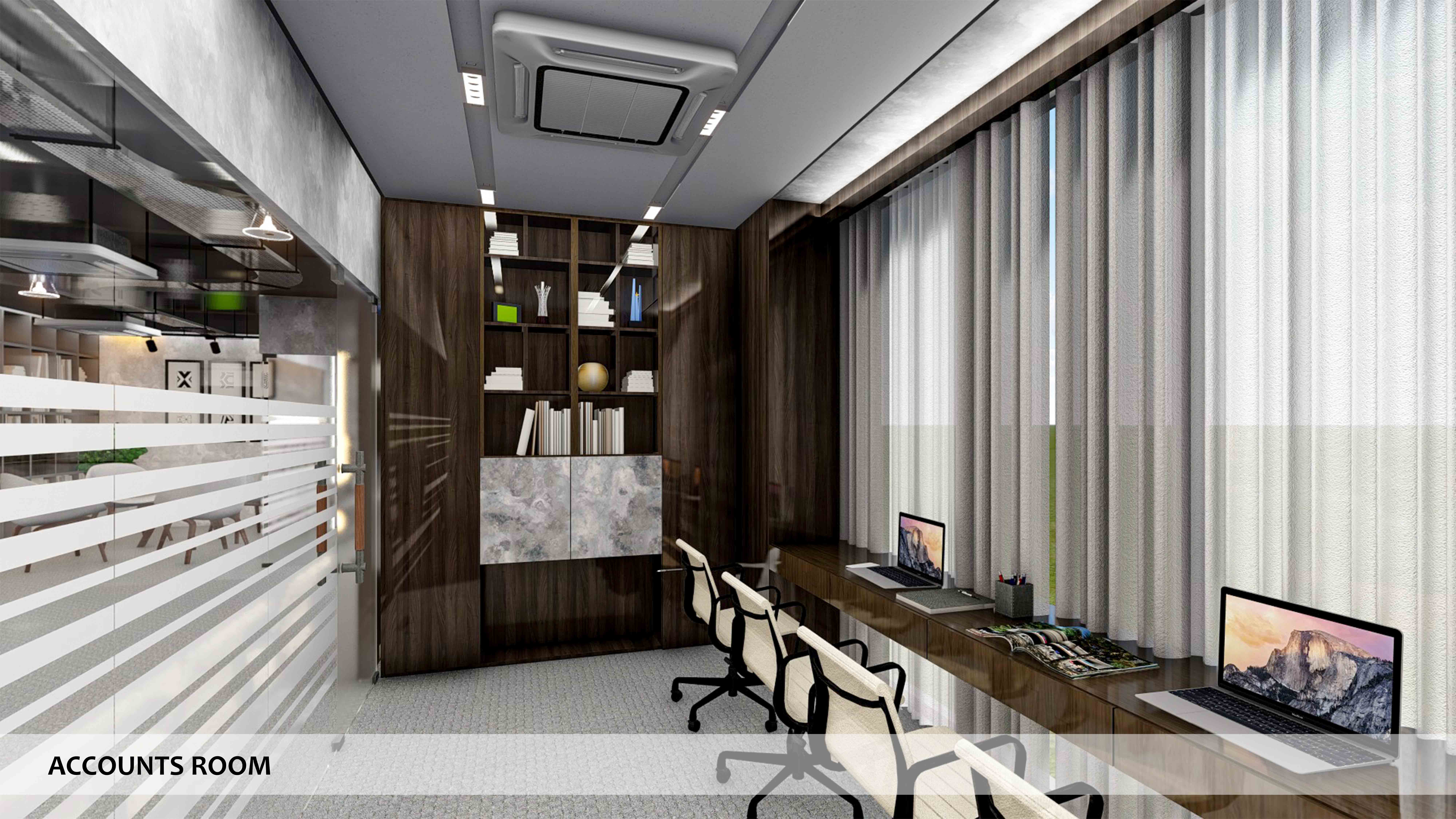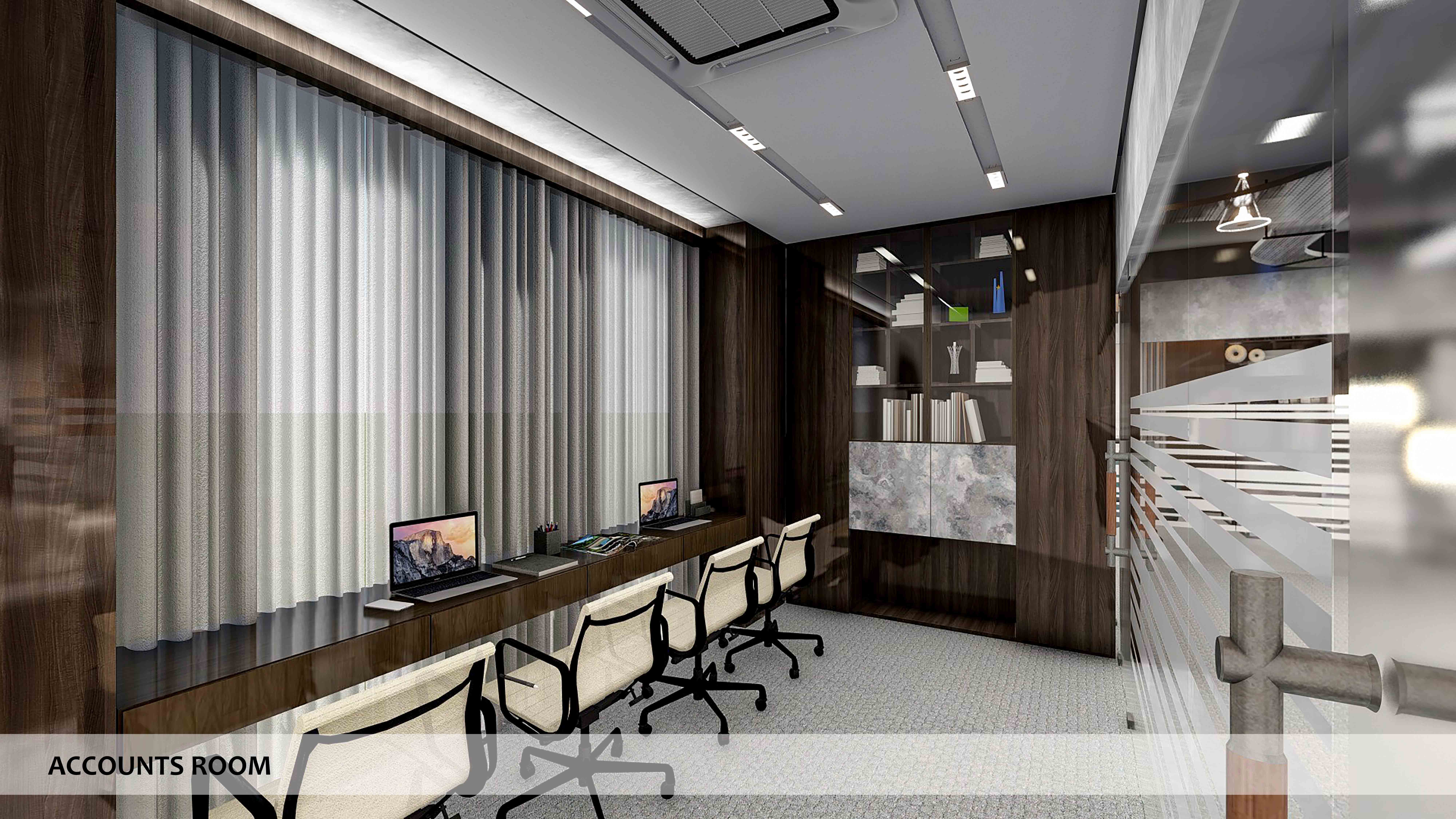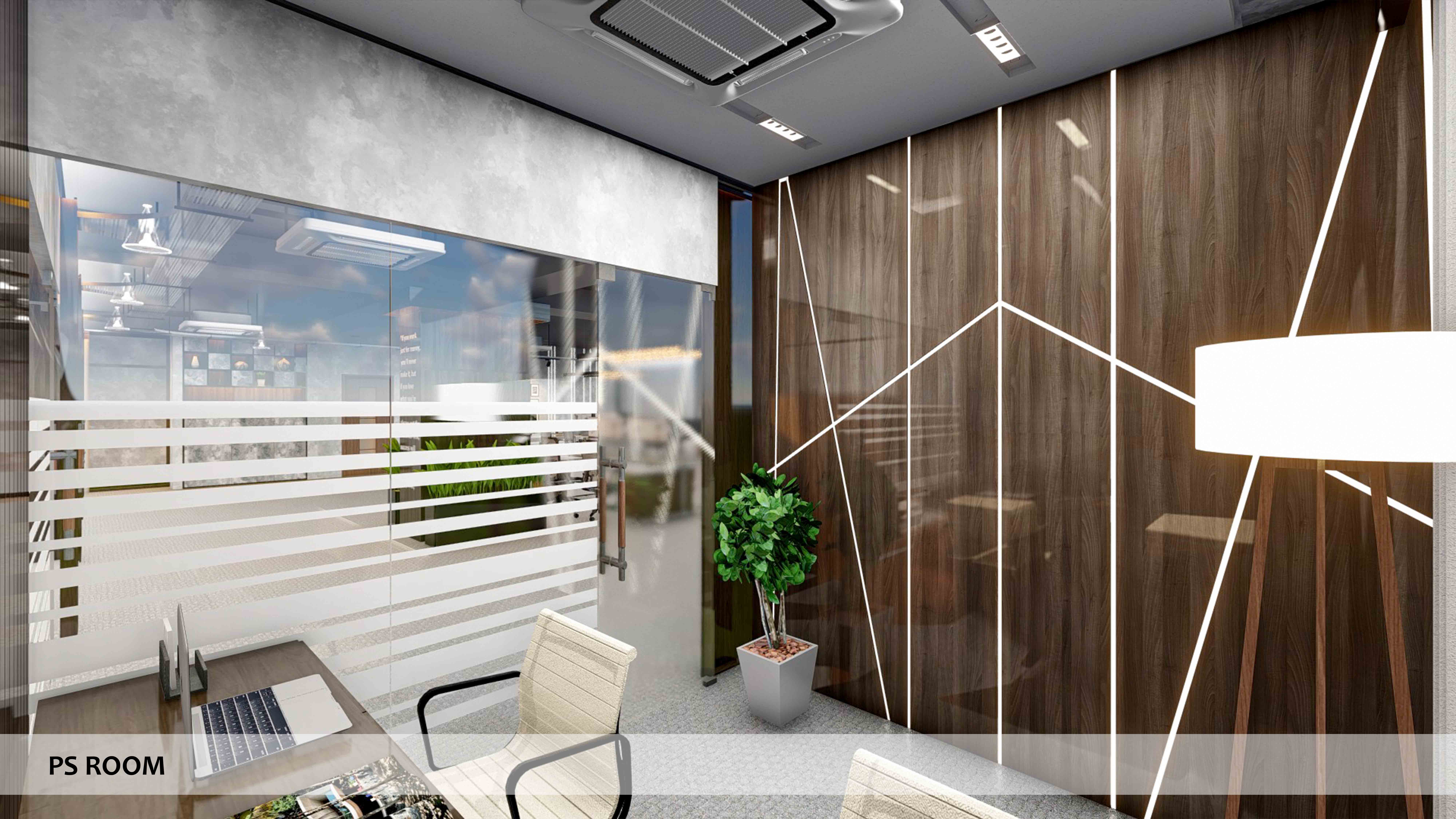 Every seniors rooms are designed as private executive zones that reflect authority and sophistication. A combination of wood veneer, soft grey walls, and strategic lighting establishes a calm and focused atmosphere. Custom furniture, minimal ornamentation, and framed monochrome artworks introduce a contemporary corporate character.